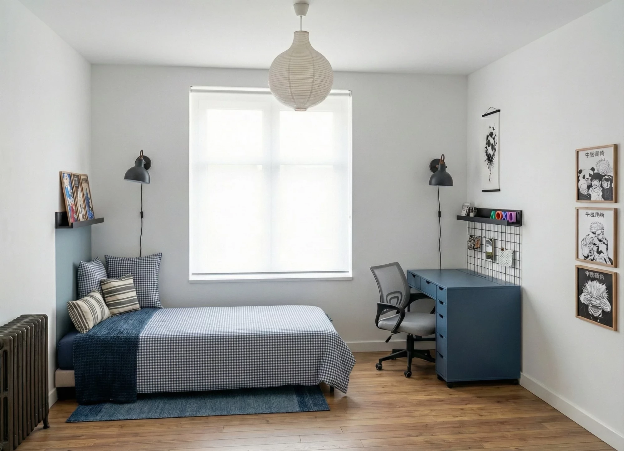 Décoration d’une chambre pour une ado, avec espace bureau, coin lecture et coiffeuse