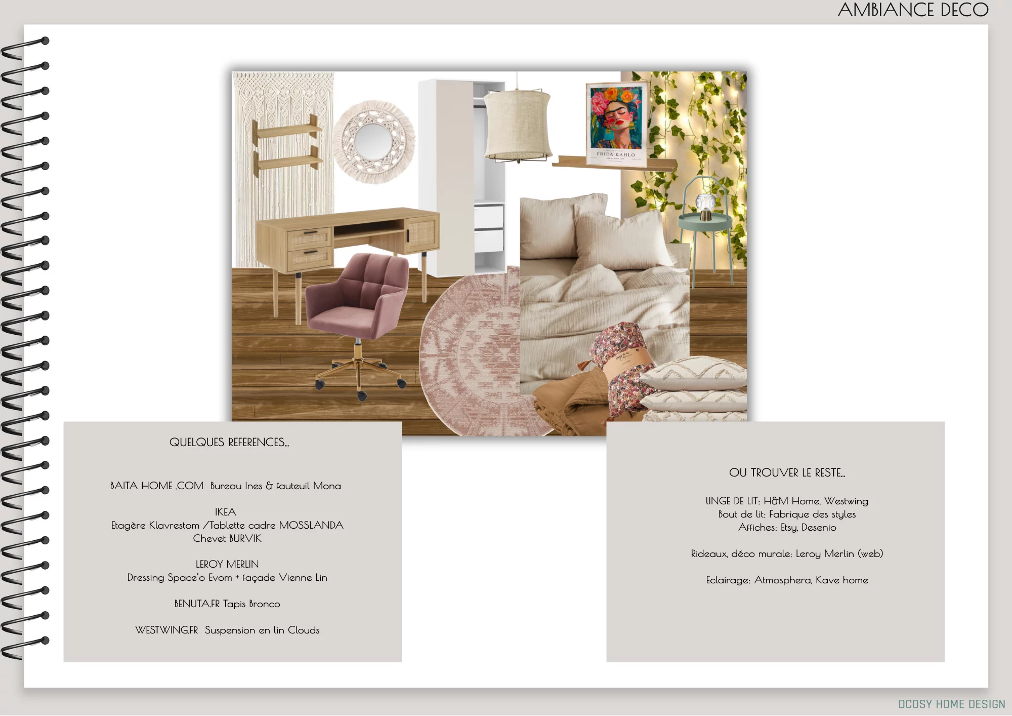 Mon client m’a demandé d’optimiser l’agencement la chambre de sa fille. Il a opté pour une formule coaching déco, la jeune fille arrivant bien à se projeter, elle n’avait donc pas besoin de croquis 3D.