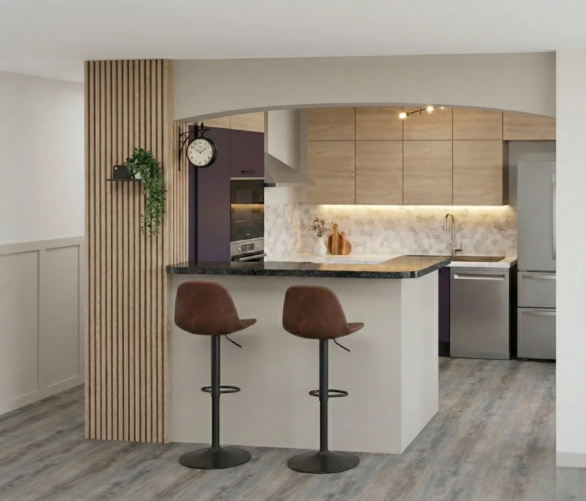 Je leur ait donc proposé un agencement et des alternatives d’ambiance avec des éléments appartenant au cuisiniste qu’ils avaient sélectionné !